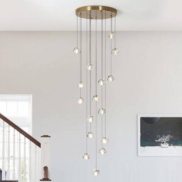 Questions and Answers for UMEILUCE Raindrop 16-Lights Gold LED Chandelier for Living Dining Room Staircase with Clear Crystal Shade, G4 Bulb Base