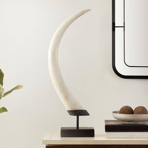 Fenra 29.5 in. Black/White Elephant Tusk Decorative Table Sculpture