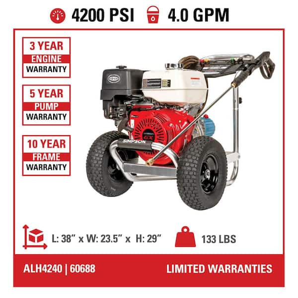 Questions and Answers for SIMPSON 4200 PSI 4.0 GPM Gas Cold Water Pressure Washer with HONDA GX390 Engine