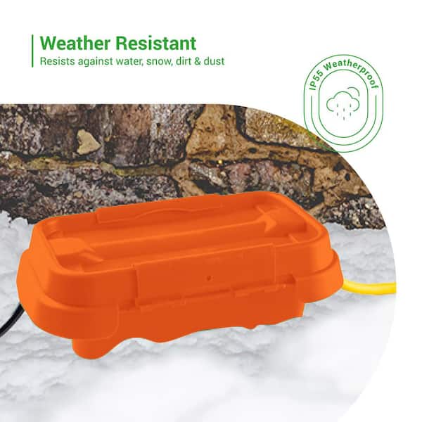 - Heavy-duty plastic construction with silicone weatherproof seal