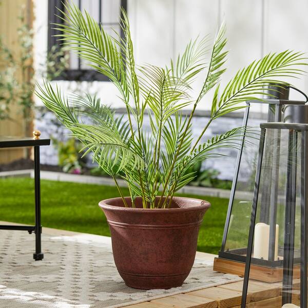 SRA13001P05 13-Inch Round Outdoor Resin Sierra Planter, Rustic Redstone