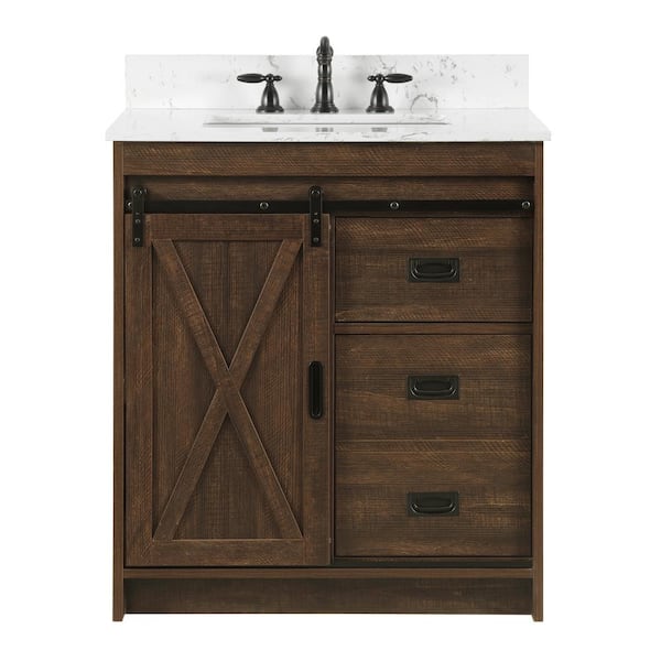 Questions and Answers for SUDIO Rafter 30 in. W x 22 in. D Bath Vanity in Rustic Brown with Carrara White Engineered Stone Vanity Top with White Sink