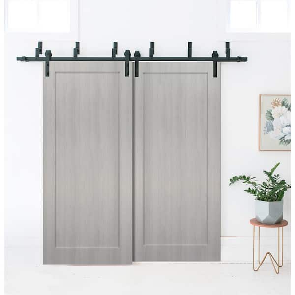 64 in. x 84 in. Gray Finished Pine MDF Sliding Barn Door with Hardware Kit