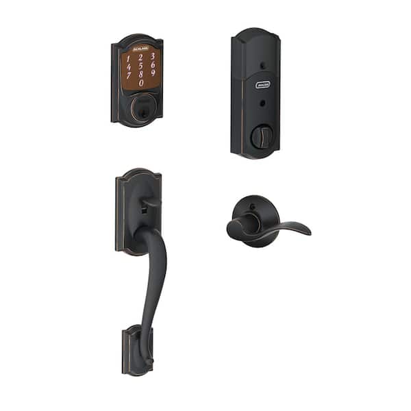 Camelot Aged Bronze Sense Smart Door Lock with Left Handed Accent Lever Door Handleset