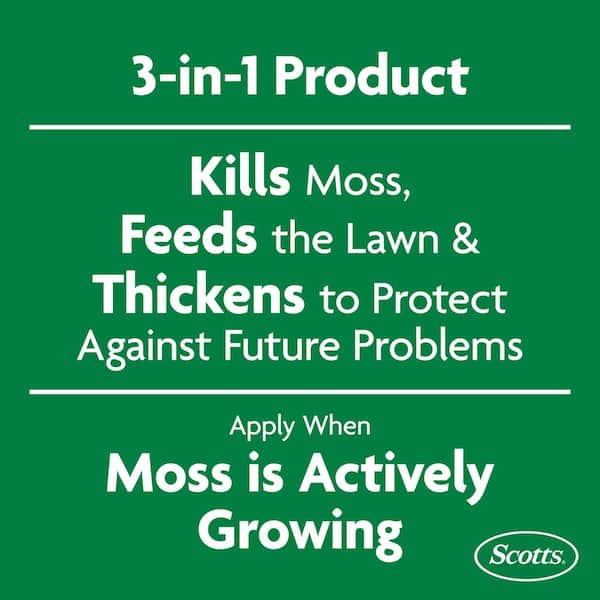 - 3-in-1 lawn product kills moss, feeds lawn, and thickens grass