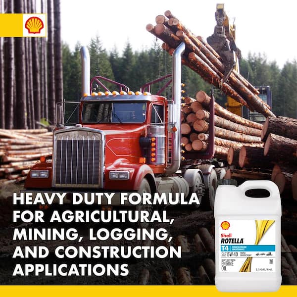 - Shell Rotella motor oil designed for enhanced wear protection
