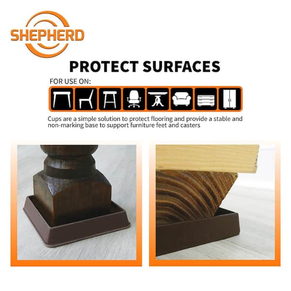 Questions and Answers for Shepherd 2 in. Brown Square Smooth Rubber Floor Protector Furniture Cups for Carpet & Hard Floors (4-Pack)