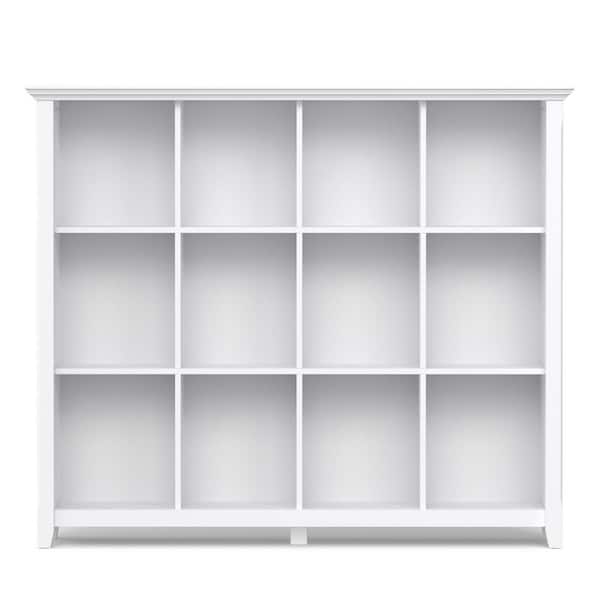 Questions and Answers for Simpli Home Acadian 48 in. Tall White Solid Wood 3-Shelf 12 Cube Storage Bookcase