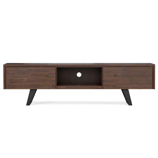 Questions and Answers for Simpli Home Lowry Solid Acacia Wood 72 in. Wide Modern Industrial TV Media Stand in Distressed Charcoal Brown For TVs up to 80 in.