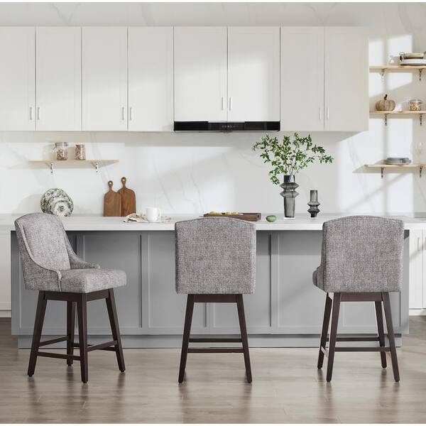 Questions and Answers for Spruce & Spring 26 in. Syrinx Light Gray High Back Wood Swivel Counter Stool with Faux Leather Seat (Set of 2)