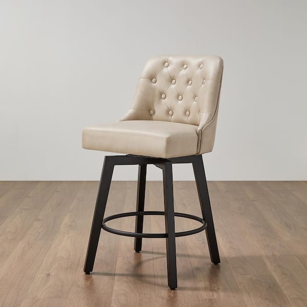 Be the first to ask a question for Spruce & Spring Percival 26 in. Beige Leather Counter Height Swivel Barstools with Back for Kitchen and Dining Room (Set of 2)