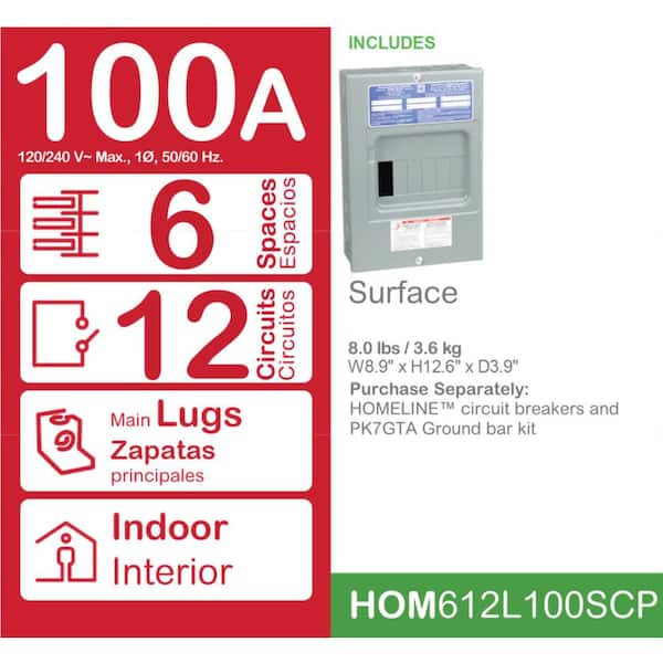 Questions and Answers for Square D Homeline 100 Amp 6-Space 12-Circuit Indoor Surface Mount Main Lug Load Center with Cover