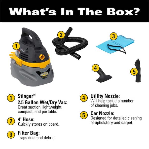 Questions and Answers for Stinger 2.5 Gal. 1.75-Peak HP Compact Wet Dry Vac