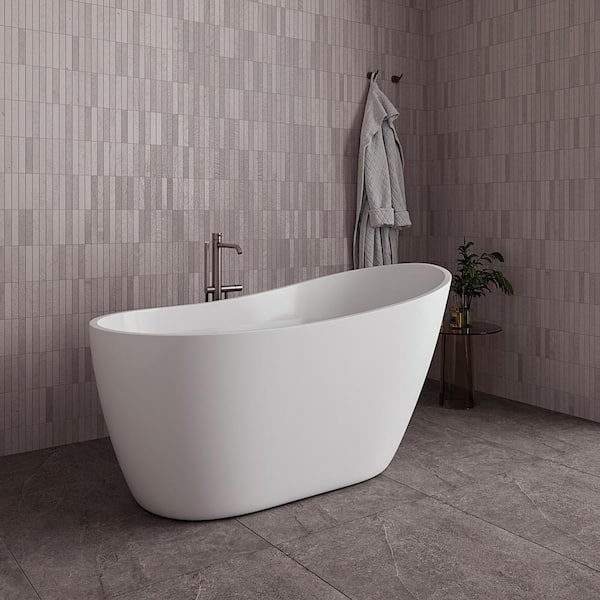 Questions and Answers for Streamline 55 in. x 28 in. Acrylic Freestanding Soaking Bathtub in Glossy White with Brushed Nickel Drain
