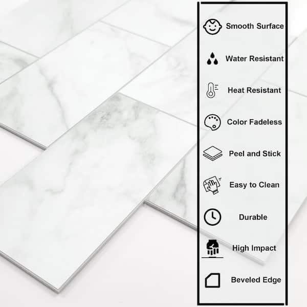 Questions and Answers for sunwings Subway Carrara Marble 12 in. x 12 in. White Peel and Stick Backsplash Stone Composite Wall Tile (9.69 sq. ft. /Case)