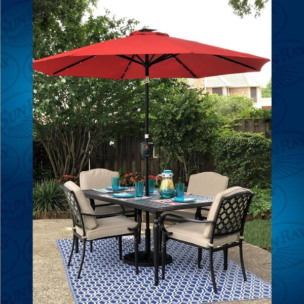 Questions and Answers for Sun-Ray 9 ft. Market Round Bluetooth Speaker Solar Lighted Patio Umbrella with Olefin Canopy in Hunter Green
