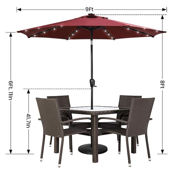Questions and Answers for Sun-Ray 9 ft. Round Market Solar Lighted Umbrella in Burgundy