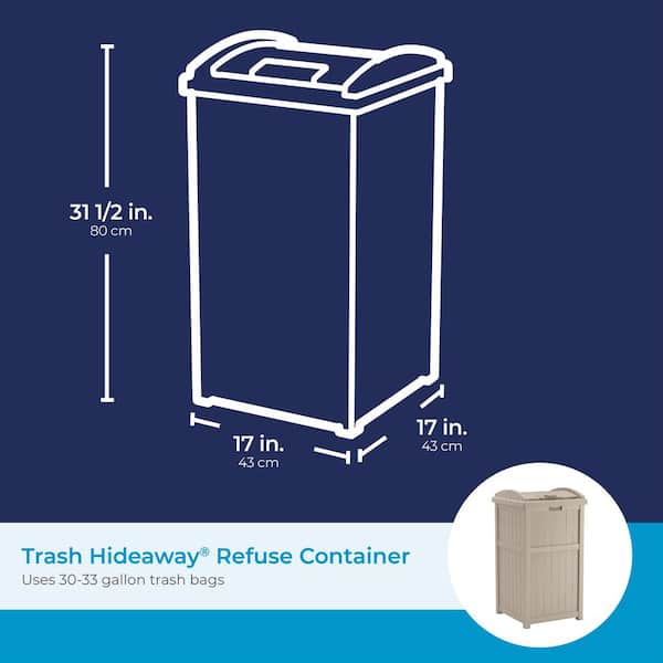 Be the first to ask a question for Suncast Plastic Trash Hideaway 30 Gallon Beige Outdoor Trash Can with Lid, Suitable for Patios, Decks and Backyards