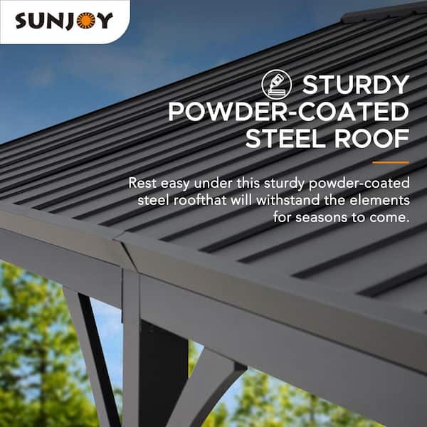 Questions and Answers for Sunjoy 20 ft. W x 14 ft. D x 10 ft. H Newville Steel Frame Carport with Brown Power-Coated Steel Roof