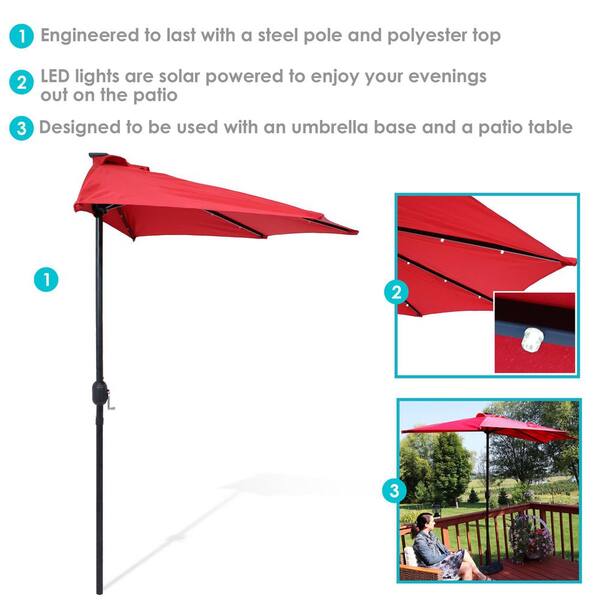 - Half umbrella features solar lights to illuminate outdoor spaces