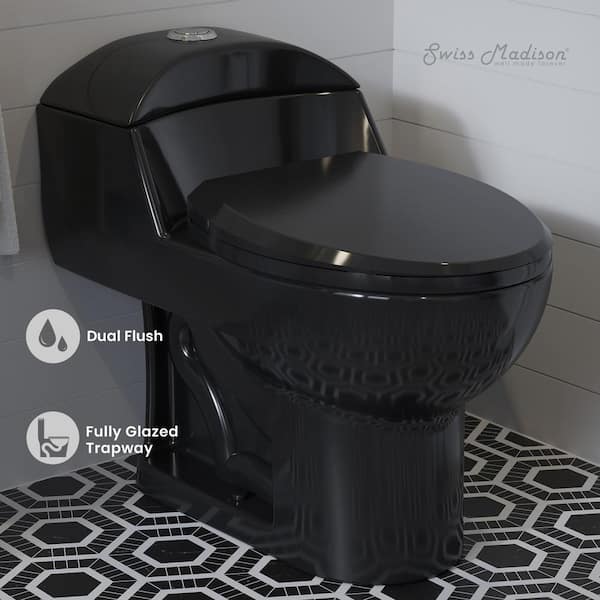 Questions and Answers for Swiss Madison Chateau 1-Piece Elongated Toilet Dual-Flush in Glossy Black 1.1/1.6 gpf