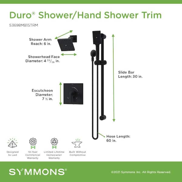 Questions and Answers for Symmons Duro HydroMersion Shower Faucet Trim Kit Wall Mounted with Single Handle and Hand Spray - 1.5 GPM (Valve Not Included)