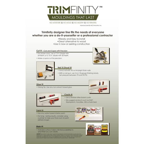 Be the first to ask a question for TRIMFINITY 15/32 in. x 4-1/4 in. x 96 in. Polystyrene White Base Moulding