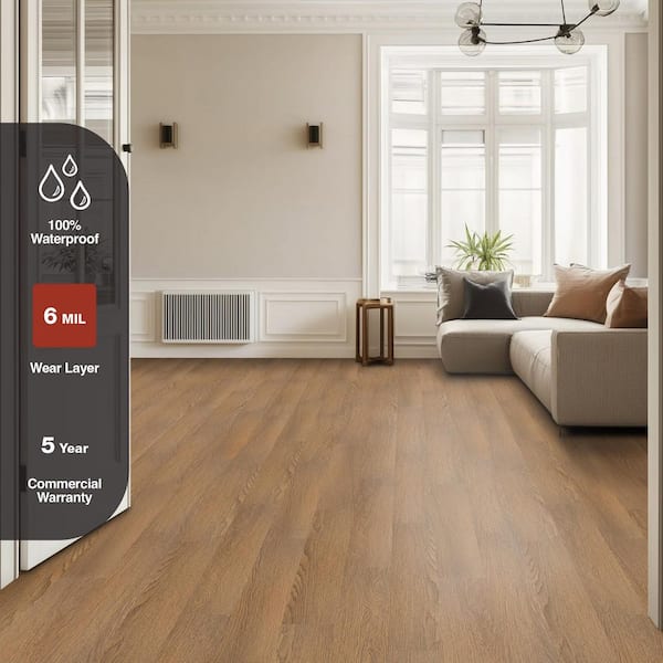 Questions and Answers for TrafficMaster Redwood Shores Oak 6 MIL x 6 in. x 36 in. Waterproof Click Lock Vinyl Plank Flooring (23.95 sq. ft./case)