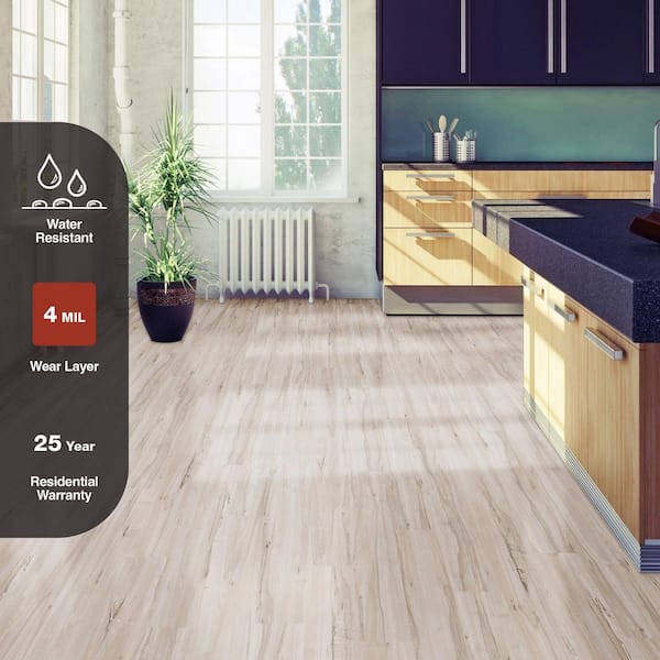Questions and Answers for TrafficMaster White Maple 4 MIL x 6 in. W x 36 in. L Grip Strip Water Resistant Luxury Vinyl Plank Flooring (24 sqft/case)