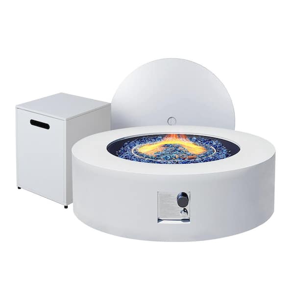 42 in. Outdoor Round Iron White Fire Pit Table with Propane Tank Holder