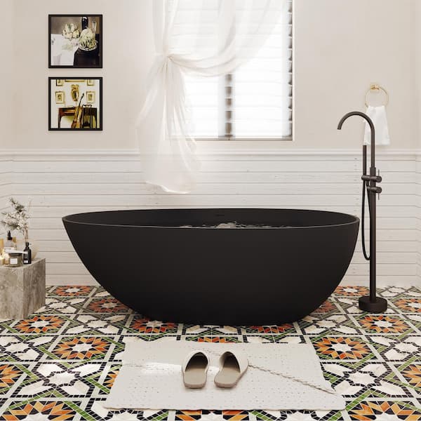 Questions and Answers for VANITYFUS 59 in. x 31 in. Stone Resin Solid Surface Non-Slip Freestanding Soaking Bathtub with Brass Drain and Hose in Matte Black