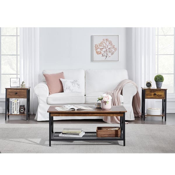 Nightstands X-Design Side End Table Night Stand Storage Shelf with Drawer 11.8 Wx 15.8 L x 21.7 H Antique Brown Set of 2