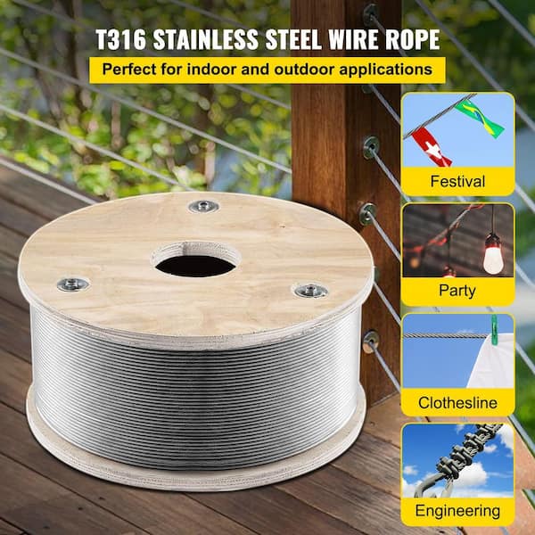 Be the first to ask a question for VEVOR 500 ft. x 1/8 in. T316 Stainless Steel Wire Rope 2100 lbs. Load Aircraft Wire Cable with 1x19 Strands Core for Railing