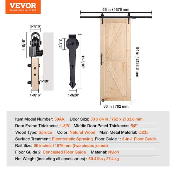 Questions and Answers for VEVOR Barn Door and Hardware Kit, 30 x 84 x 1.38 in. Wood Sliding Barn Door, Smoothly and Quietly, Access Door