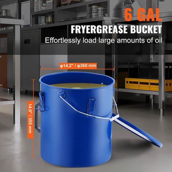 Questions and Answers for VEVOR Fryer Grease Bucket 6 Gal. Rust-Proof Coating Oil Transport Container with Lid and Lock Clips for Hot Cooking, Blue
