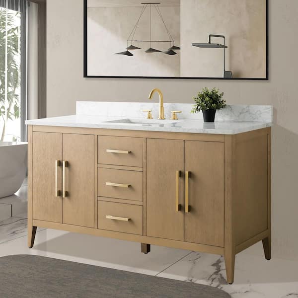 Questions and Answers for Vanity Art 60 in. W x 22 in. D x 34 in. H Single-Sink Bathroom Vanity in Natural Oak with Engineered Marble Top in Arabescato White