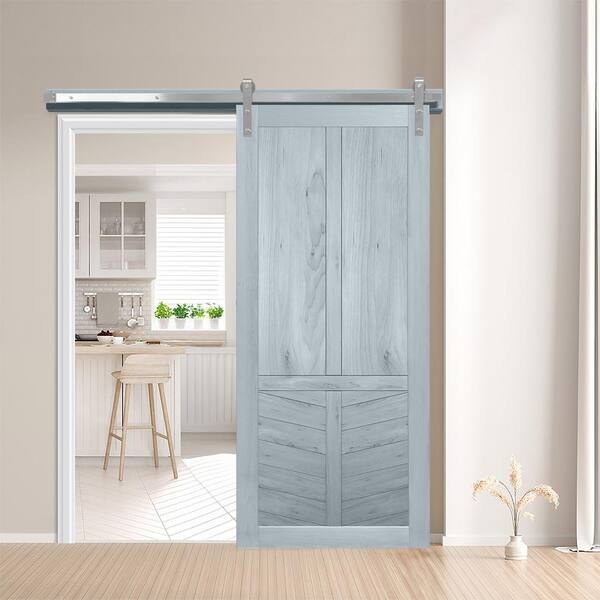 42 in. x 84 in. the Robinhood Beach House Wood Sliding Barn Door with Hardware Kit in Stainless Steel