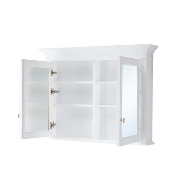 Questions and Answers for WELLFOR 40 in. W x 30 in. H White Rectangular Handmade Wood Surface Mount Medicine Cabinet with Mirror, 2 Soft Close Doors
