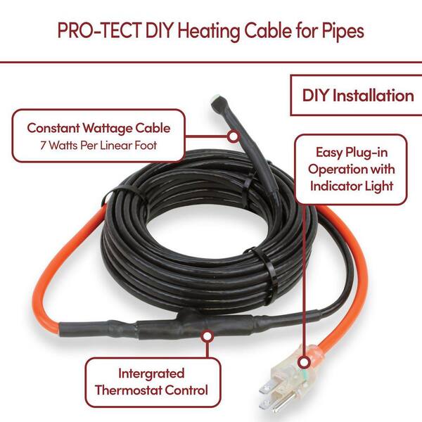 40' PRO-Tect DIY Plug-in Heating Cable for Pipes, Constant Wattage (7W/ft), 120V
