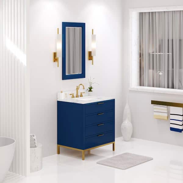 Be the first to ask a question for Water Creation Bristol 30 in. W x 34 in. H x 21.5 in. D Single Sink Bath Vanity in Blue with Carrara White Marble Top and Hook Faucet