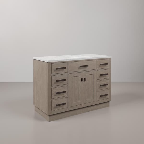 Questions and Answers for Water Creation Chestnut 48 in. W x 21.5 in. D x 34.2 in. H Single Sink Bath Vanity in Grey Oak with Carrara White Marble Top