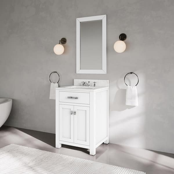 Questions and Answers for Water Creation Madison 24 in. W x 21.5 in. D x 34 in. H Single Sink Bath Vanity in Pure White with Carrara White Marble Top and Mirror