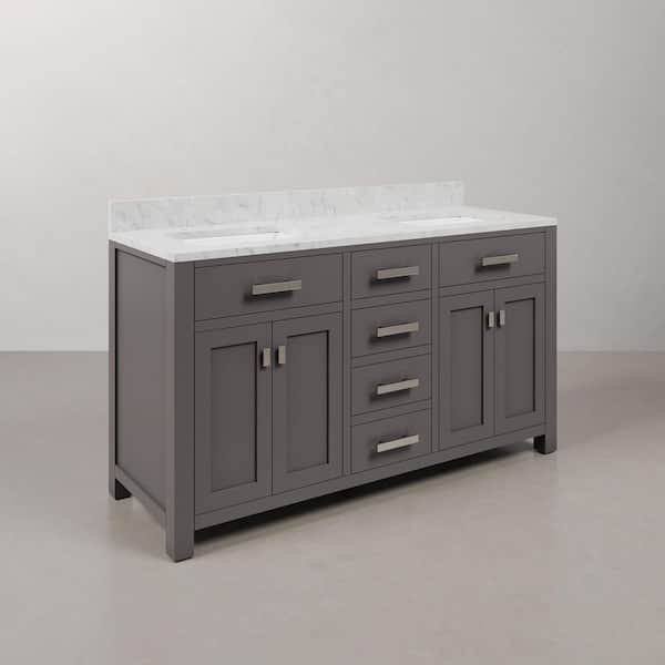 Be the first to ask a question for Water Creation Madison 60 in. W x 21.5 in. D x 34 in. H Double Sink Bath Vanity in Cashmere Grey with Carrara White Marble Top