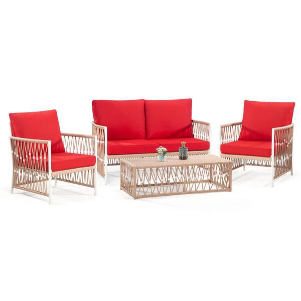 Questions and Answers for JOYSIDE Wicker Outdoor Patio 3 Seat Sofa Couch with Red Cushion