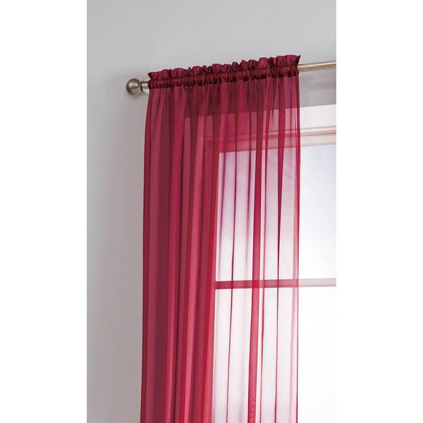 Sheer Diamond Sheer 56 in. W x 63 in. L Rod Pocket Extra Wide Curtain Panel in Burgundy