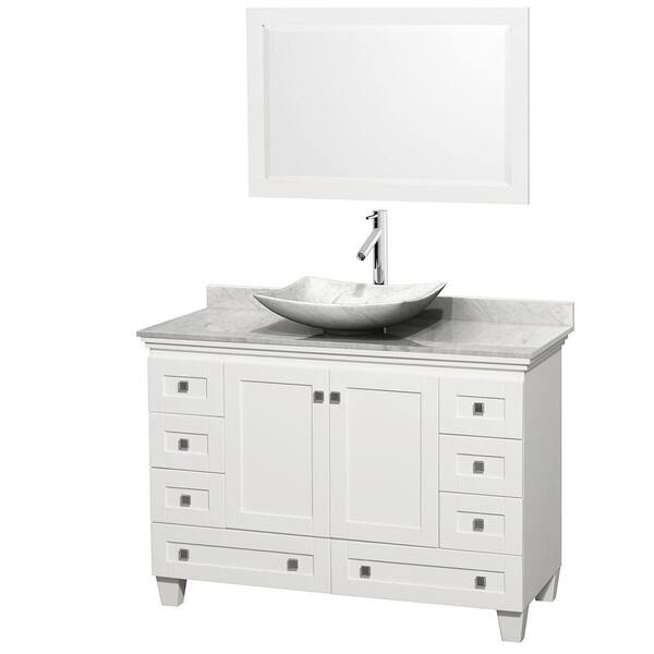 Acclaim 48 in. W Vanity in White with Marble Vanity Top in Carrara White and White Carrara Marble Sink
