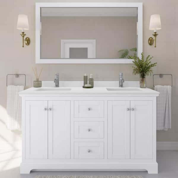 Avery 60 in. W x 22 in. D x 35 in. H Double Bath Vanity in White with White Quartz Top