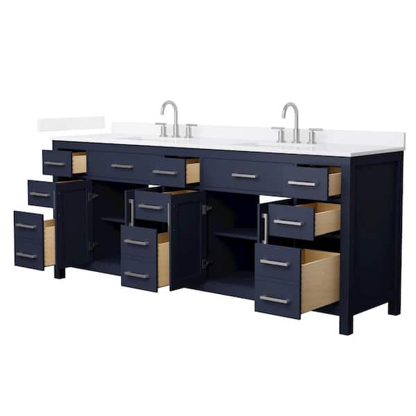 Questions and Answers for Wyndham Collection Beckett 84 in. Double Freestanding Dark Blue Bath Vanity with White Quartz Top (Assembled)