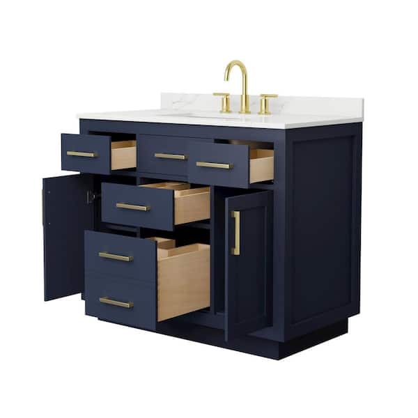 Questions and Answers for Wyndham Collection Beckett TK 42 in. W x 22 in. D x 35 in. H Single Bath Vanity in Dark Blue with Giotto Quartz Top