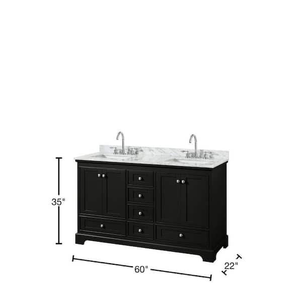 Be the first to ask a question for Wyndham Collection Deborah 60 in. Double Bathroom Vanity in Dark Espresso with Marble Vanity Top in White Carrara with White Basins